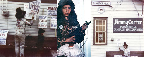 Stacy Samuels was Nobody's first musician and David Peel did the first Nobody for President Song at Nobody's 1976 Rally in Dag Hammarskjold Plaza, New York City [NYT header] with support from The Holy Modal Rounders.